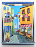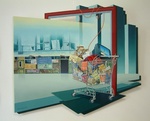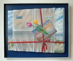 - Ruimtelijk Realistische Olieverfschilderijen op ingezaagd en iets verhoogd paneel. Geschilderde schaduwen in de voorstelling lopen, bij een juiste belichting, veelal door op de wand, waardoor een trompe-l'oeil achtig effect ontstaat.
