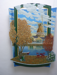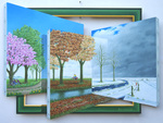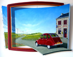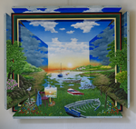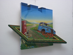 - Ruimtelijk Realistische olieverf schilderijen op een een iets verhoogd (4 cm) ingezaagd paneel. Bij een juiste belichting ontstaat op de wand slagschaduw. Hierdoor wordt de suggestie van en ruimte en diepte in de voorstelling versterkt, een trompe-loeil -achtg effect